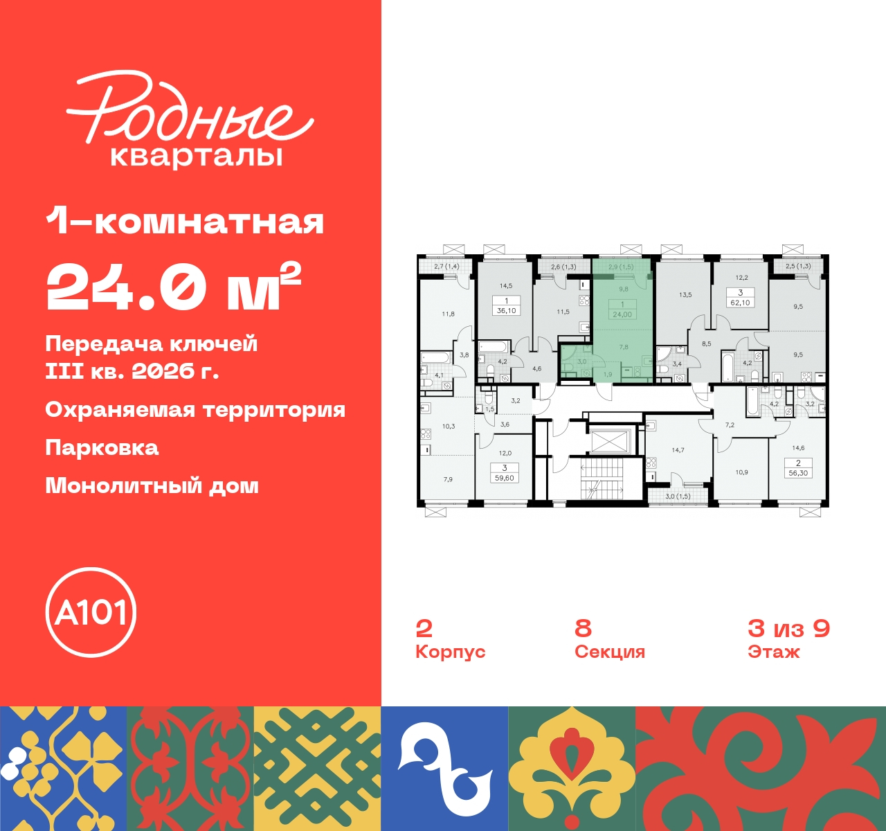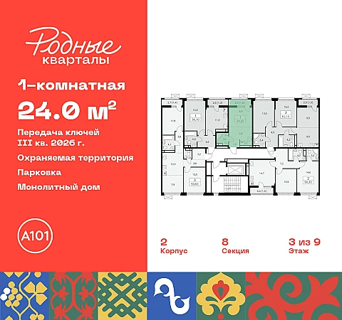 Купить 1к квартиру 24 м² в ЖК "Родные кварталы"