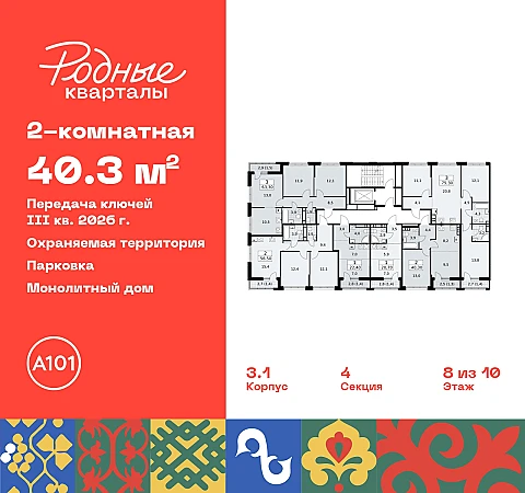 Купить 2к квартиру 40 м² в ЖК "Родные кварталы"