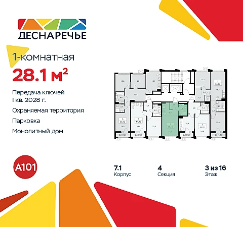 Купить 1к квартиру 28 м² в ЖК "Деснаречье"