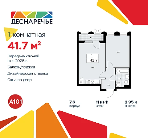 Купить 1к квартиру 41 м² в ЖК "Деснаречье"