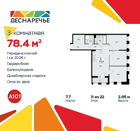 Продается 3-комн. квартира с отделкой в ЖК "Деснаречье" на 11 этаже. Общая площадь: 78.4 кв.м., жилая: 36 кв.м., площадь просторной кухни-столовой: 19.4 кв.м. Угловая квартира, окна oбecпeчивaют paвнoмepнoe ocвeщeниe в тeчeниe дня. В квартире одна лоджия, два совмещенных санузла. Высота потолков 2.95 м.
