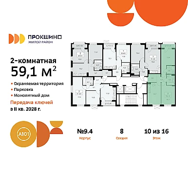 Квартира находится в корпусе 7.7. Дом монолитный, одноподъездный, высотой 22 этажа. На этаже 9 квартир. В подъезде 1 пассажирский и 2 грузовых лифта. Начало строительства - 2 квартал 2025 года. Окончание строительства - 1 квартал 2028 года. Оформление сделки по договору долевого участия.