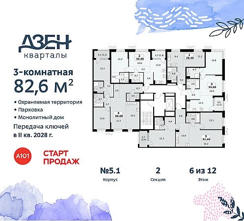 Купить 3к квартиру 82 м² в ЖК "Дзен-кварталы"