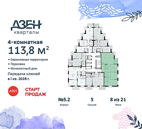 Купить 4к квартиру 113 м² в ЖК "Дзен-кварталы"