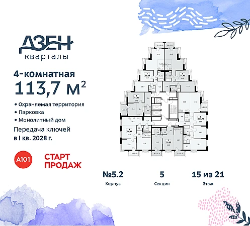 Купить 4к квартиру 113 м² в ЖК "Дзен-кварталы"