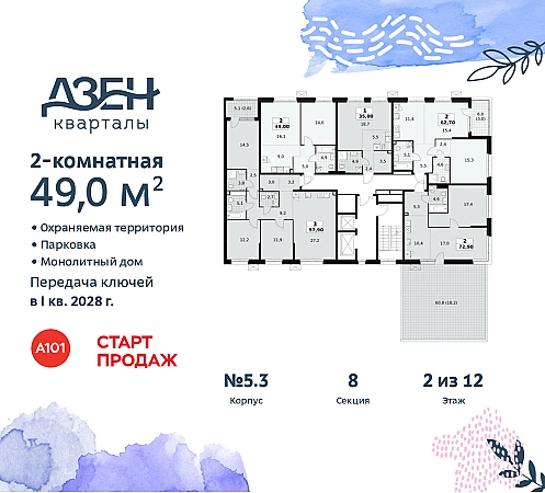 Купить 2к квартиру 49 м² в ЖК "Дзен-кварталы"
