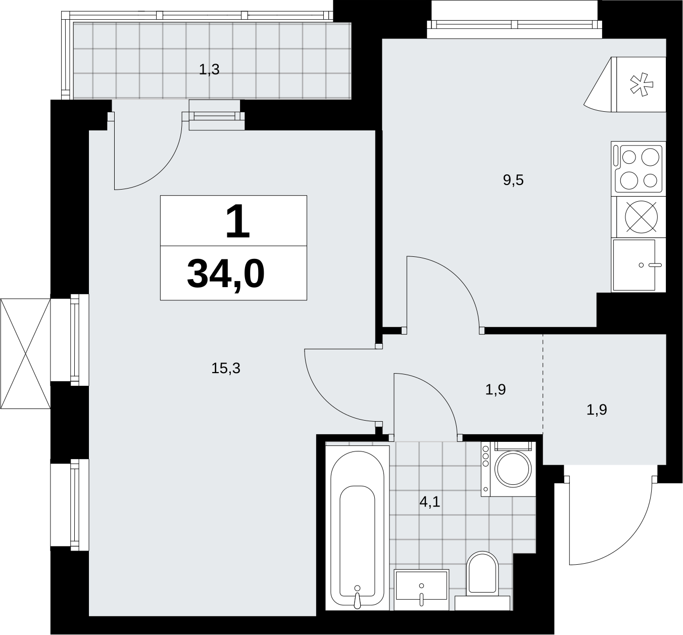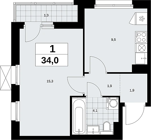 Продается однокомнатная квартира в ЖК "Прокшино" на 4 этаже. Квартира без отделки, полностью готова к чистовой отделке и дальнейшему ремонту. Общая площадь: 34 кв.м., жилая: 15.3 кв.м., площадь просторной кухни-столовой: 9.5 кв.м. Угловая квартира, очень светлая, естественная вентиляция при открытии окон. В квартире одна лоджия, один совмещенный санузел. Высота потолков 2.95 м.