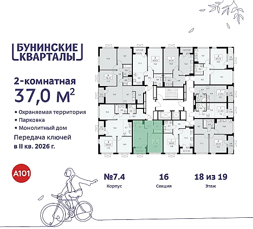 Купить 2к квартиру 36 м² в ЖК "Бунинские кварталы"