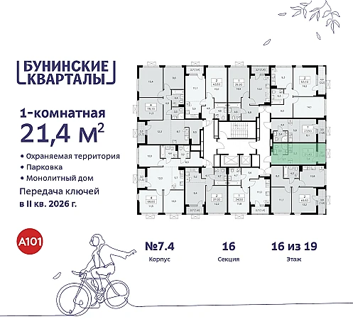 Купить 1к квартиру 21 м² в ЖК "Бунинские кварталы"