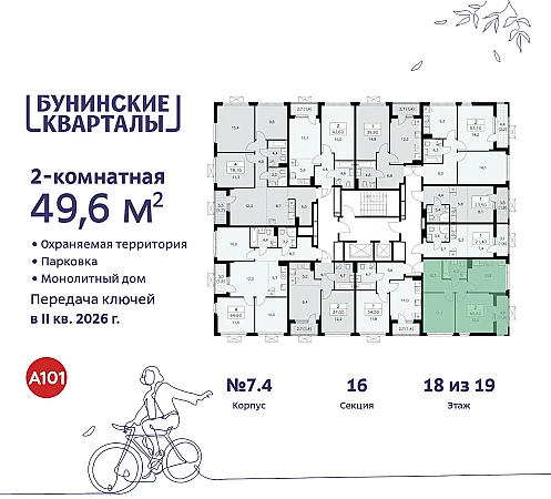 Купить 2к квартиру 49 м² в ЖК "Бунинские кварталы"