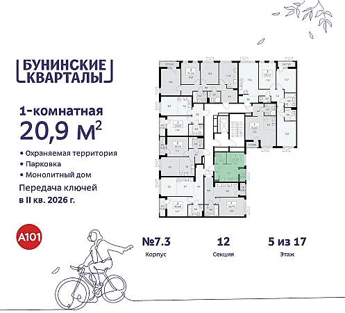 Купить 1к квартиру 20 м² в ЖК "Бунинские кварталы"