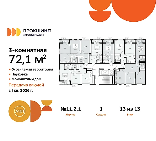 Купить 3к квартиру 72 м² в ЖК "Прокшино"