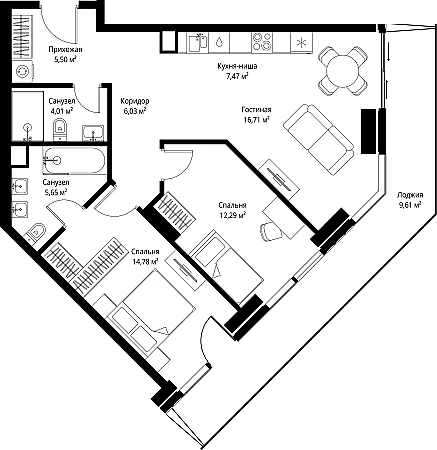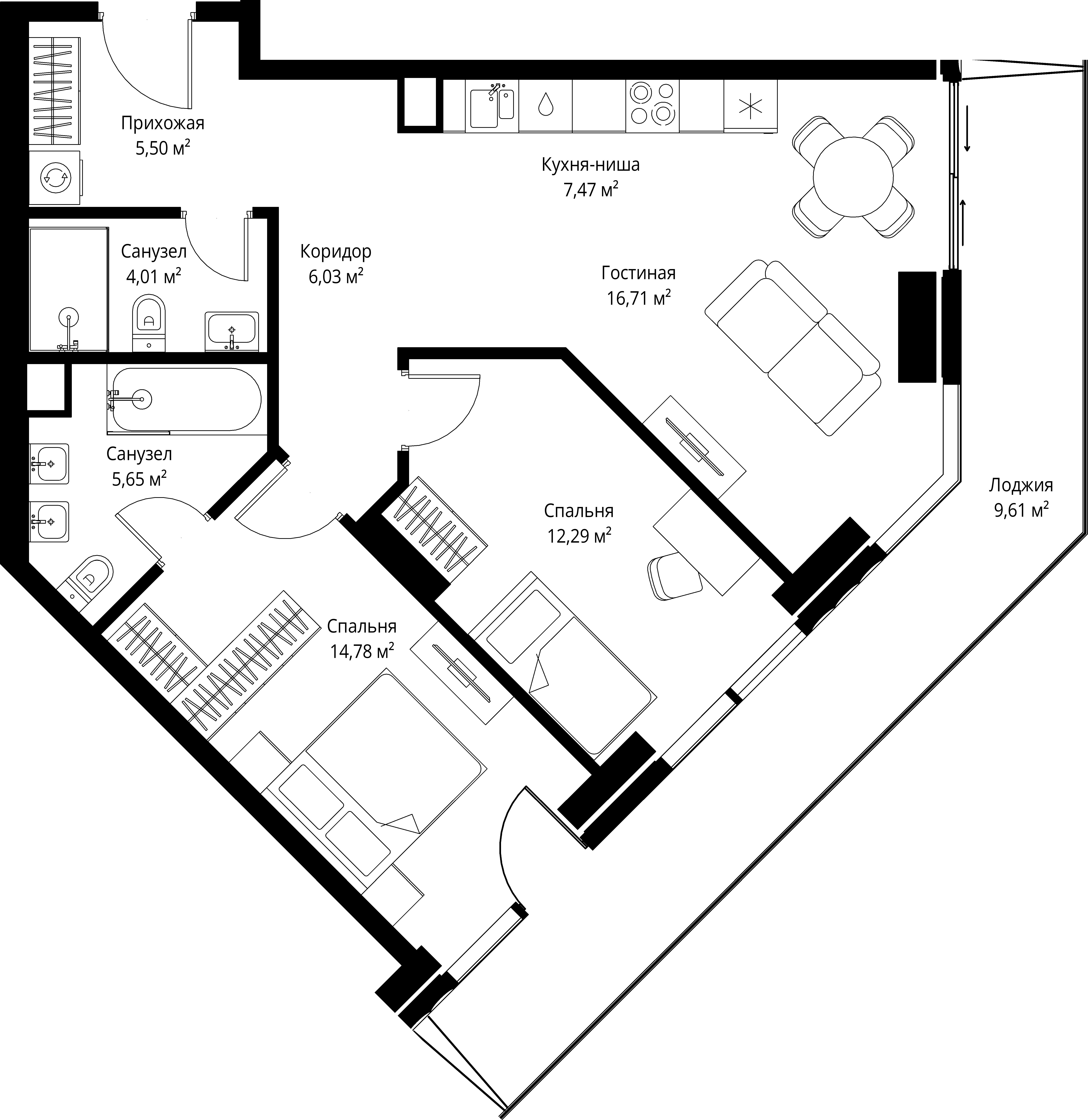 Купить 2к квартиру 82 м² в ЖК JOIS (Джойс)