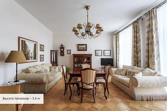 Высота потолков: ~ 3,4 м - ощущение пространства и света.