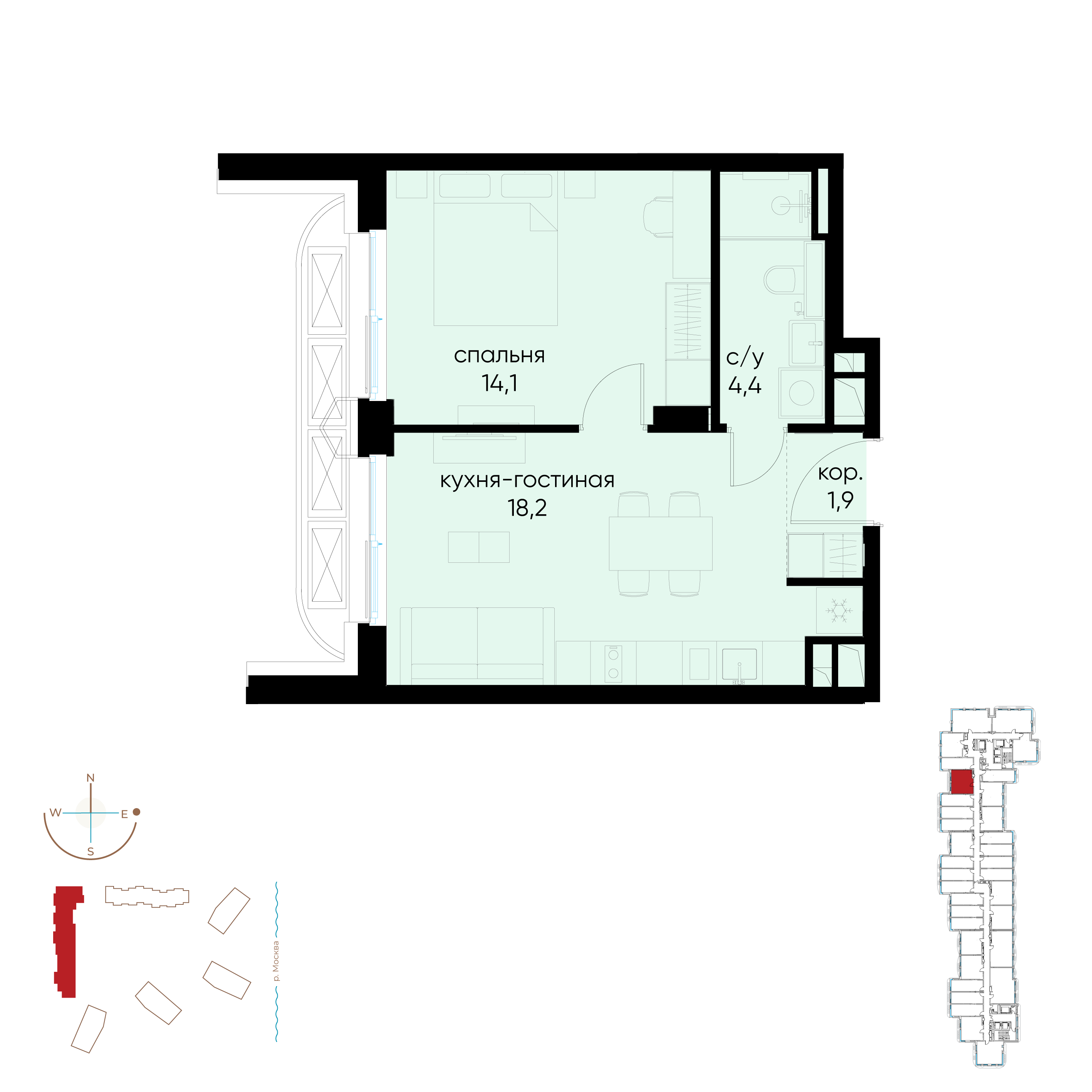 Купить 1к квартиру 38 м²