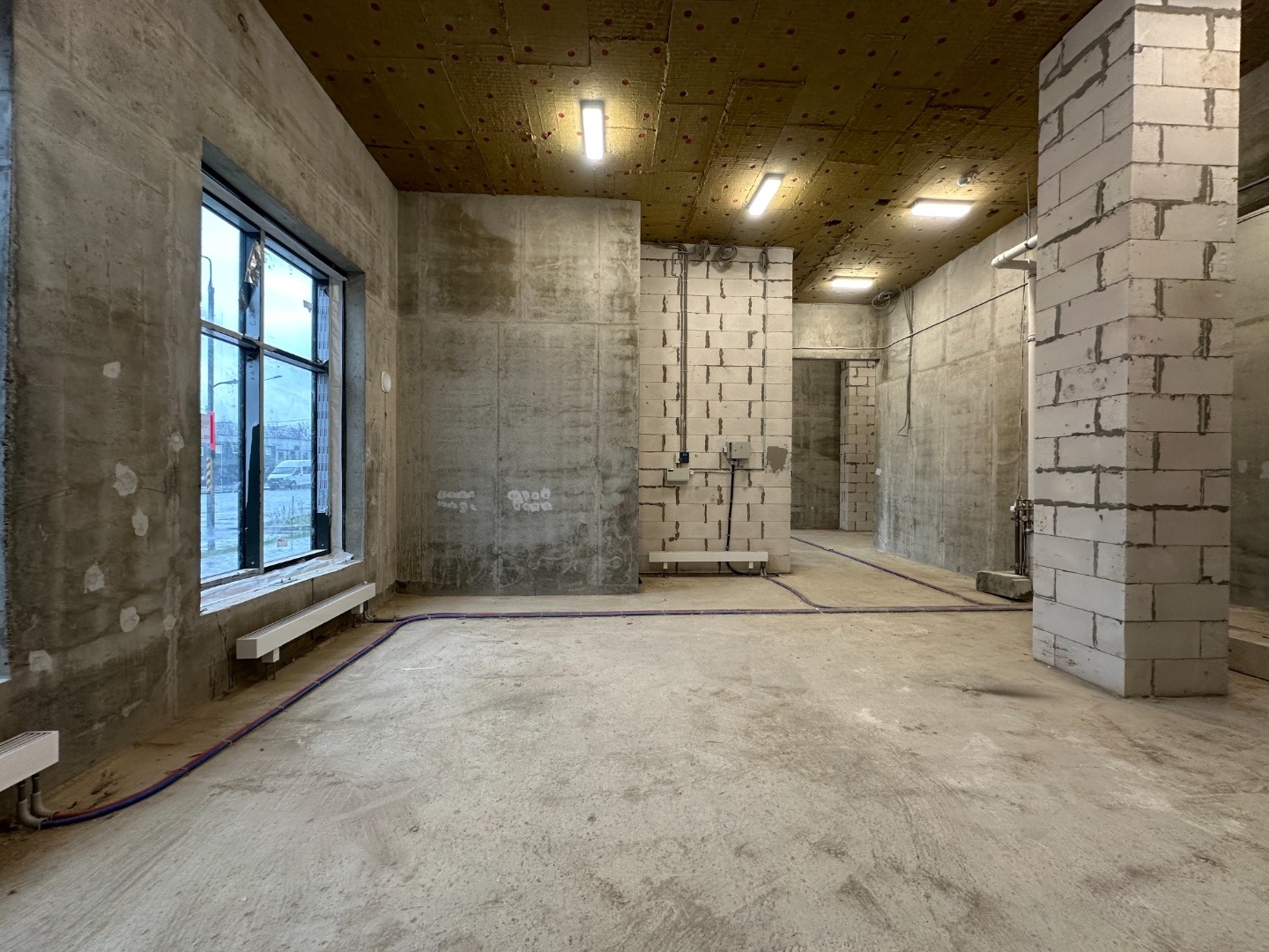 Помещение в новостройке. 1 этаж, отдельный вход с улицы, высокие потолки, витринные окна.