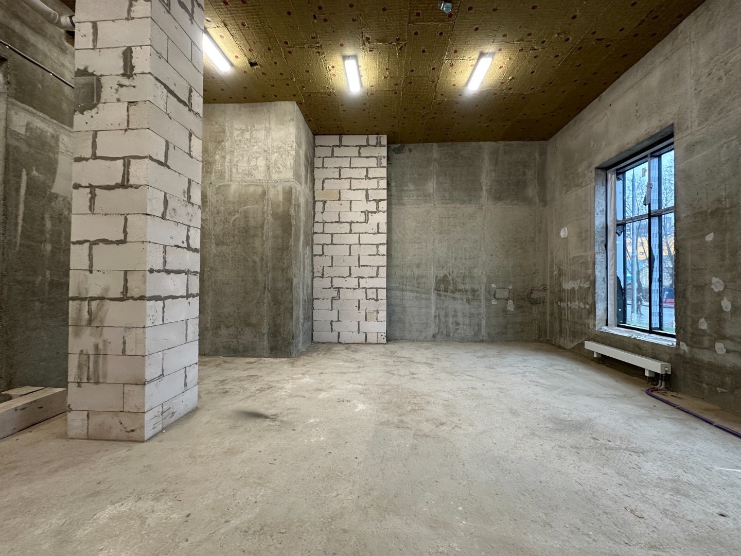 Вокруг плотный жилой массив, за счет чего обеспечивается интенсивный автомобильный и пешеходный трафик. В помещении витринное остекление и есть возможность размещения вывески.Высота потолков 3.5 м.