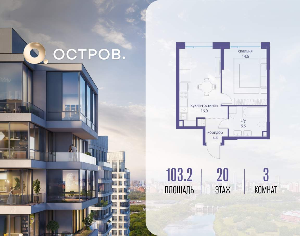 Продаётся 3-комн. квартира от застройщика: общая площадь 103.20 м, жилая м, кухня м, 20-й этаж, жилой квартал «Остров 14», корпус 6 (секция 1) . Срок сдачи: 2 квартал 2029 года.
