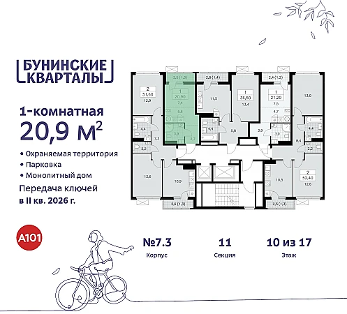 Купить 1к квартиру 21 м² в ЖК "Бунинские кварталы"