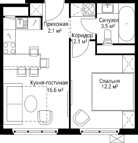 1-комн. квартира-студия от застройщика в ЖК "Бунинские кварталы" на 9 этаже. Квартира без отделки, после оформления собственности можно делать ремонт. Общая площадь: 21.1 кв.м. Высота потолков 2.8 м.
