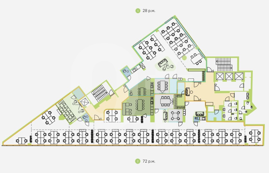 *Количество рабочих мест рассчитано автоматически: от 4,5 м2 на человека до 8 м2 на человека.