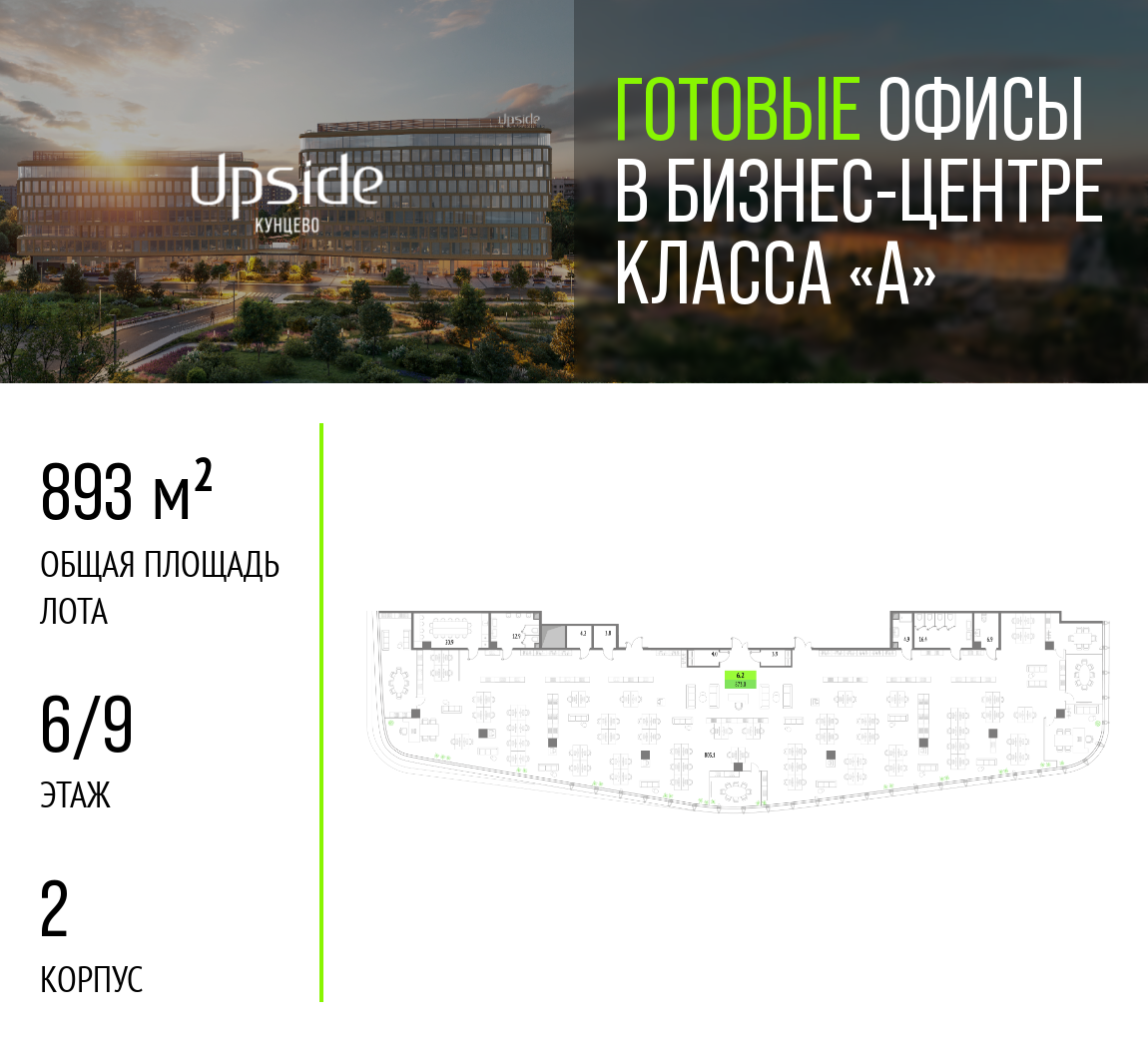 Купить офис 893 м² в БЦ Upside Kuntsevo