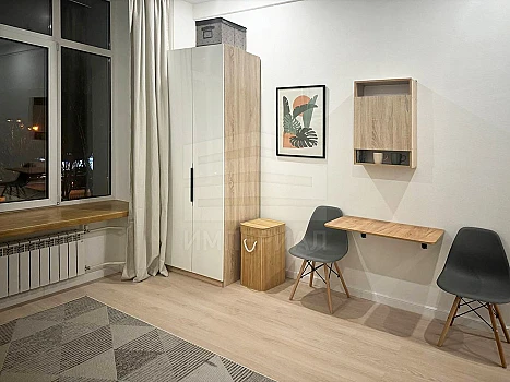 Здесь установлены новые надежные коммуникации и железобетонные перекрытия. В студии выполнена евроотделка, что избавит вас от лишних за от с обустройством помещения. Тут уже есть качественная металлическая дверь c внешней вставкой и зеркальной панелью, натяжные потолки, радиаторы. Санузел отделан под ключ, внутри есть унитаз, раковина, смеситель, поддон для душевой кабины и душевой гарнитур.