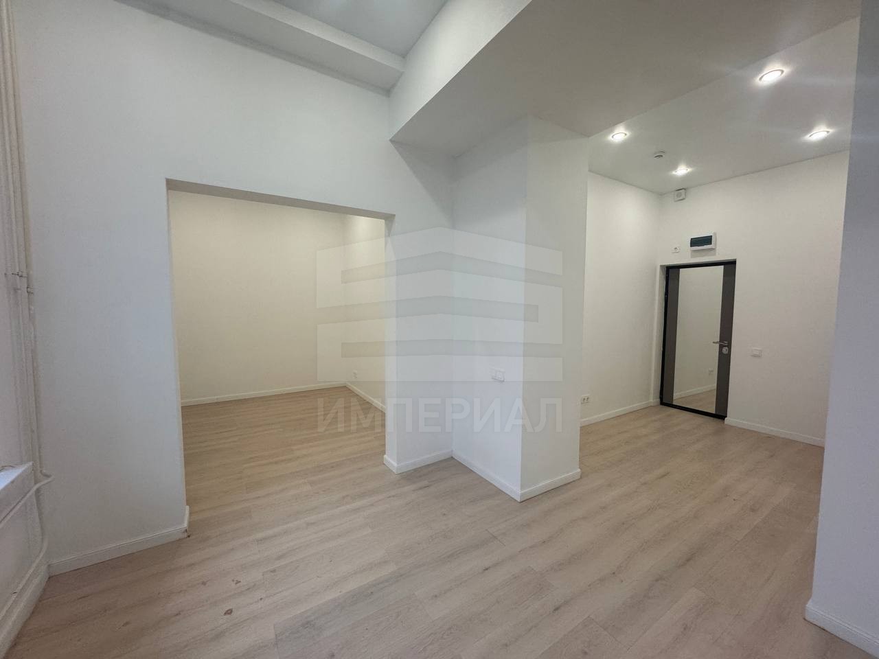 На стенах поклеены обои под покраску, на полу постелен ламинат с плинтусами и откосами. Есть вытяжная вентиляция в санузле и на кухне, выходы хв/гв, место под раковину на кухне. Кроме того, в помещениях уже есть выключатели освещения, розетки для бытовой техники и роутера, а также сделаны закладные для оптоволокна для интернета.