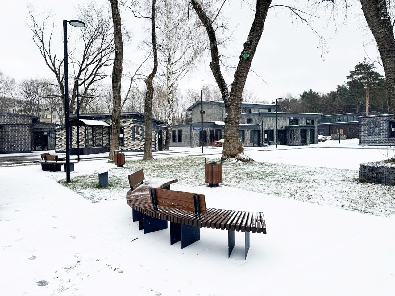 На территории организованы зоны отдыха на свежем воздухе, также дополнительно имеется возможность для организации летних веранд и кафе.