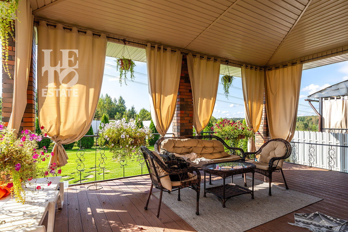 Участок правильной формы. Выполнен дорогой ландшафтный дизайн. Посажено большое количество декоративных, плодовых деревьев, а также кустарники (черешня черно-желтая, жимолость, голубика, слива желто-черная, яблоня карликовая, ранет красный, малина, смородина красная-черная, сперея и многое другое). Дорожки вымощены натуральным камнем. На участке организованы грядки и установлена теплица.