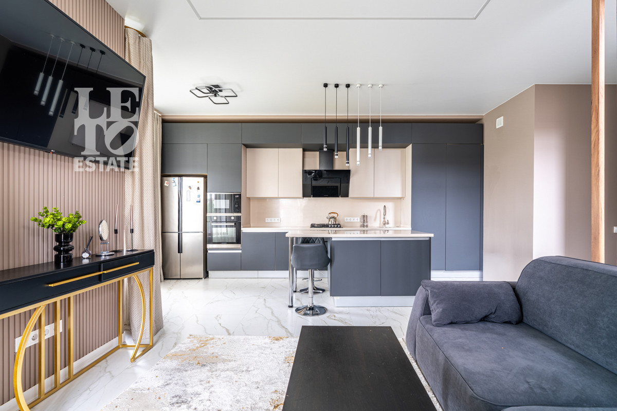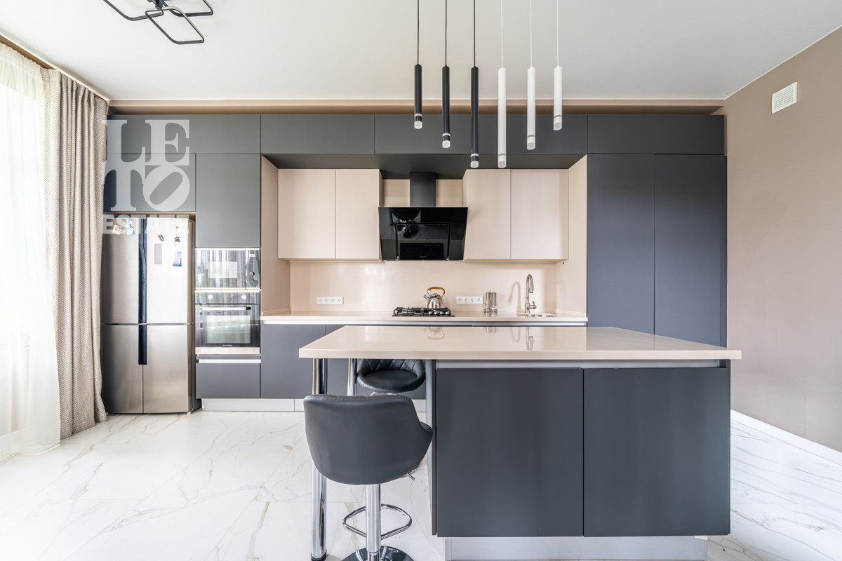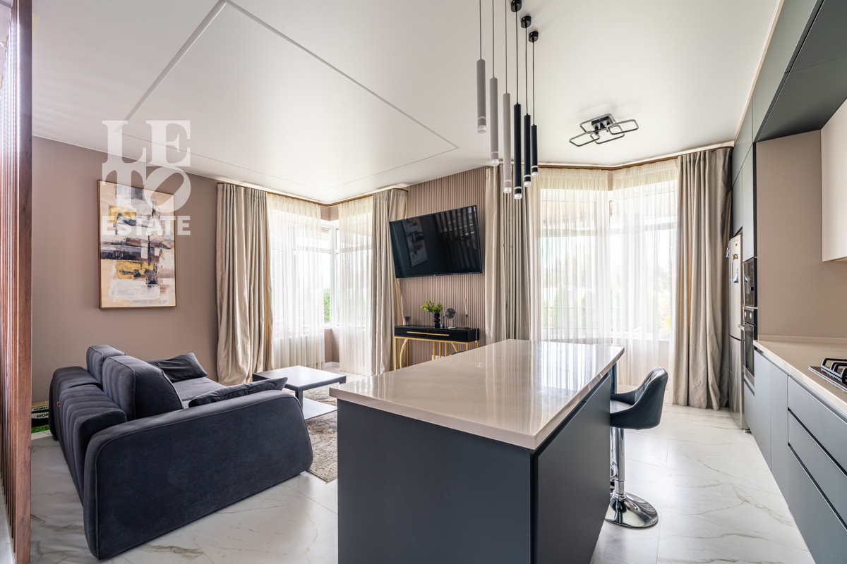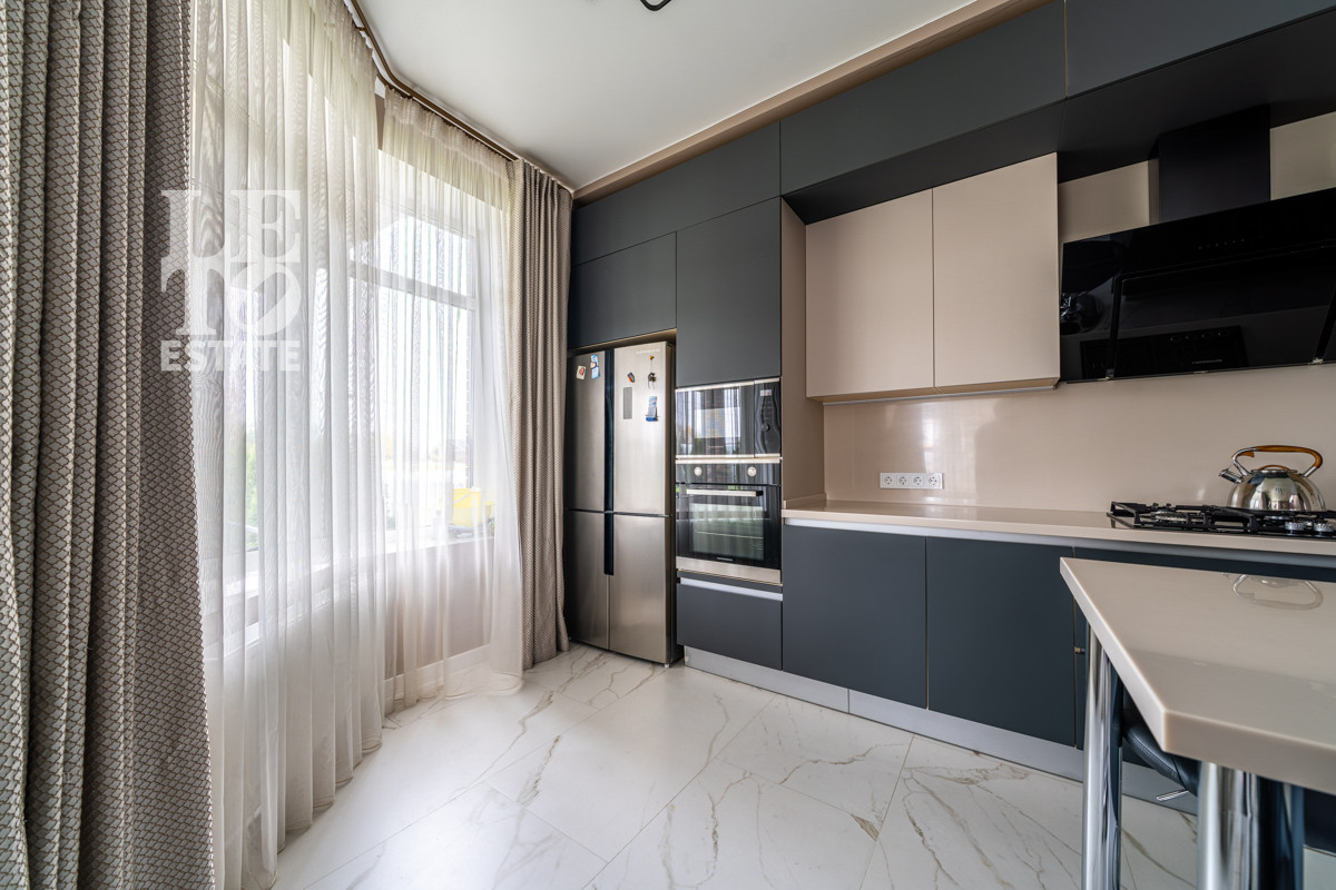 Дуплекс выполнен из качественных строительных материалов. Стены - кирпич. Фундамент - ленточный. Кровля - металлочерепица. Дизайн интерьера выполнен в современном стиле из дорогих строительных материалов и в светлых тонах. Дом полностью меблирован и укомплектован всей необходимой бытовой техникой от ведущих мировых производителей. Лестница, пол и подоконники выполнены из керамогранита, полы в зоне плитки с подогревом. Столешница и фартук кухонного гарнитура выполнены из искуственного камня. Установлен видеодомофон. Интернет - оптоволокно. Мебель и шторы входят в стоимость.