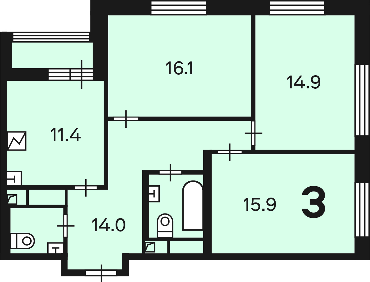 Квартира, 3-комн., 79 м², Аминьевское ш., (м.Аминьевская) | Аминьевское ш., д. 4Д, корп. 1, этаж 2, кв. 8 | Метро: Аминьевская (пешком 3 мин., транспортом 3 мин., расстояние 0.2 км)