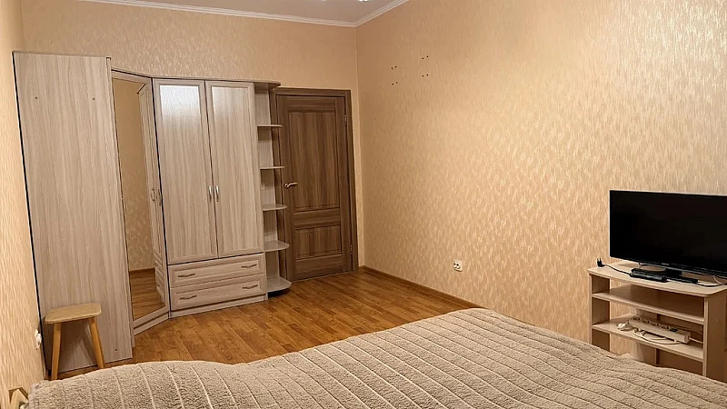 Из мебели: полностью оборудованная кухня с техникой, стол, стулья, бойлер, телевизор, стиральная машина, холодильник. В спальне двуспальная кровать, угловой шкаф, в коридоре шкаф-купе, вторая комната - диван.