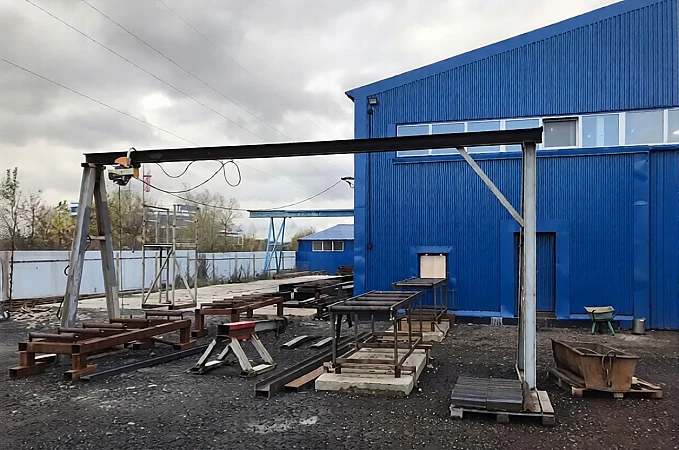 козловых крана - 2 по 3 т, рядом открытая площадка с мостовым краном 5 т. для выгрузки и хранения металла. В настоящий момент используется как сварочный цех.