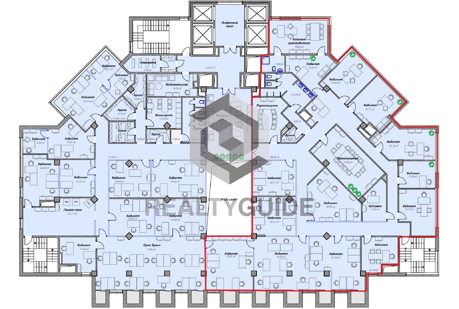 Снять офис 599 м² в БЦ Европа Билдинг
