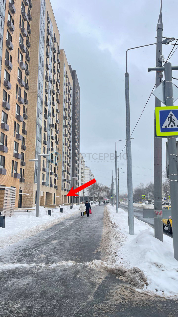 Торговое помещение с выходом на оживленную улицу, рядом с пешеходным переходом и остановкой общественного транспорта.