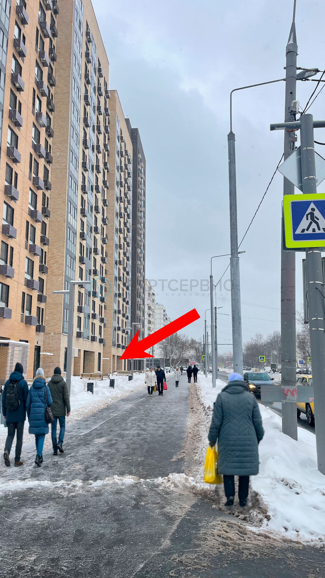 Торговое помещение с выходом на оживленную улицу, рядом с пешеходным переходом и остановкой общественного транспорта.