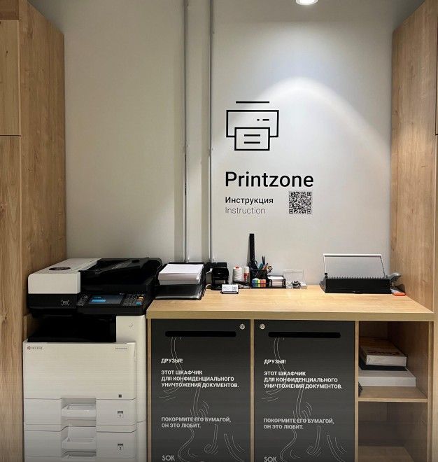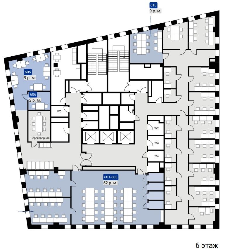 На каждом этаже есть кухня, переговорные комнаты, сан. узлы, принт зона.