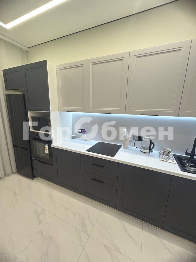 - Современная кухня со встроенной техникой: индукционная варочная панель,