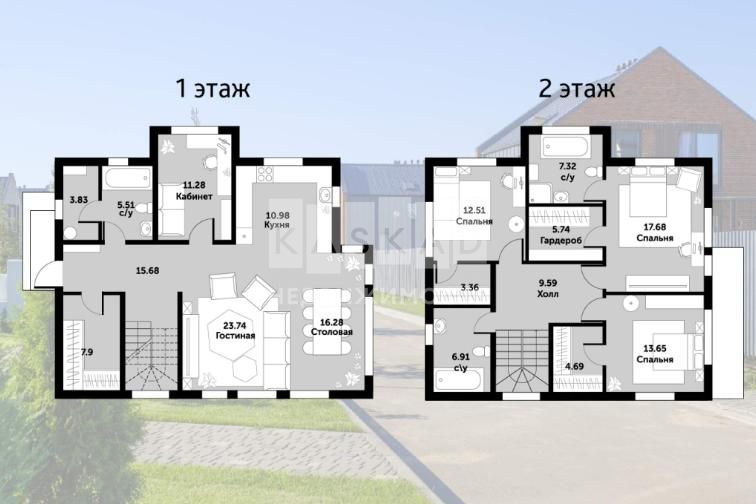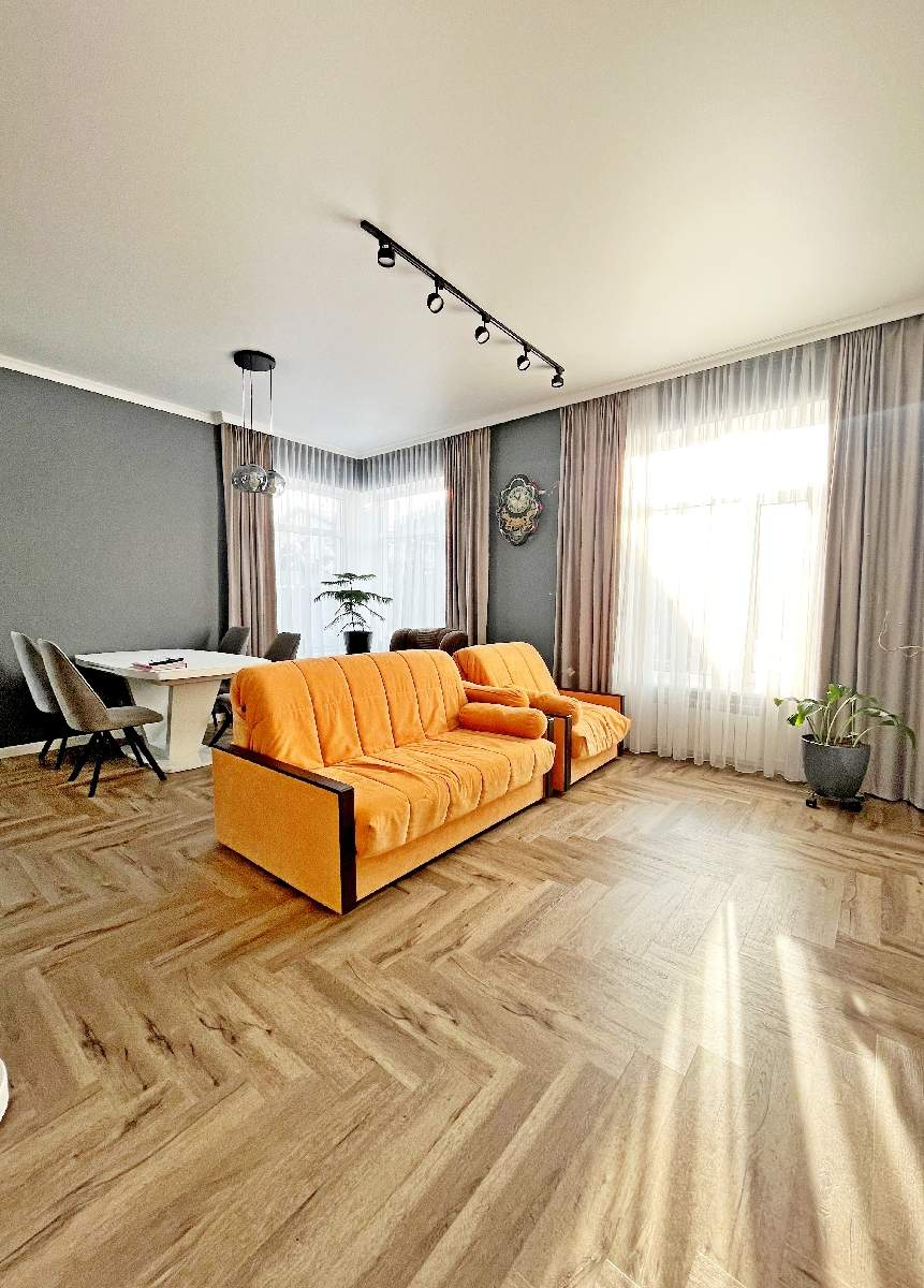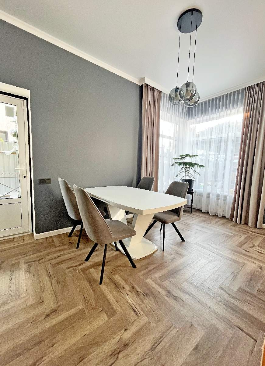 1 этаж: просторная светлая гостиная, объединенная с кухней-столовой, с выходом на терассу, кабинет, прихожая, бойлерная -постирочная, санузел, кладовая;