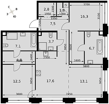 Высота потолка - 3,25 м. Мастер-спальня с гардеробной и ванной комнатой. Угловые окна. Просторная кухня-столовая.