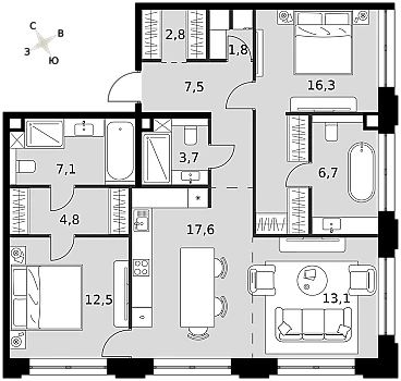 Купить 3к квартиру 90 м²
