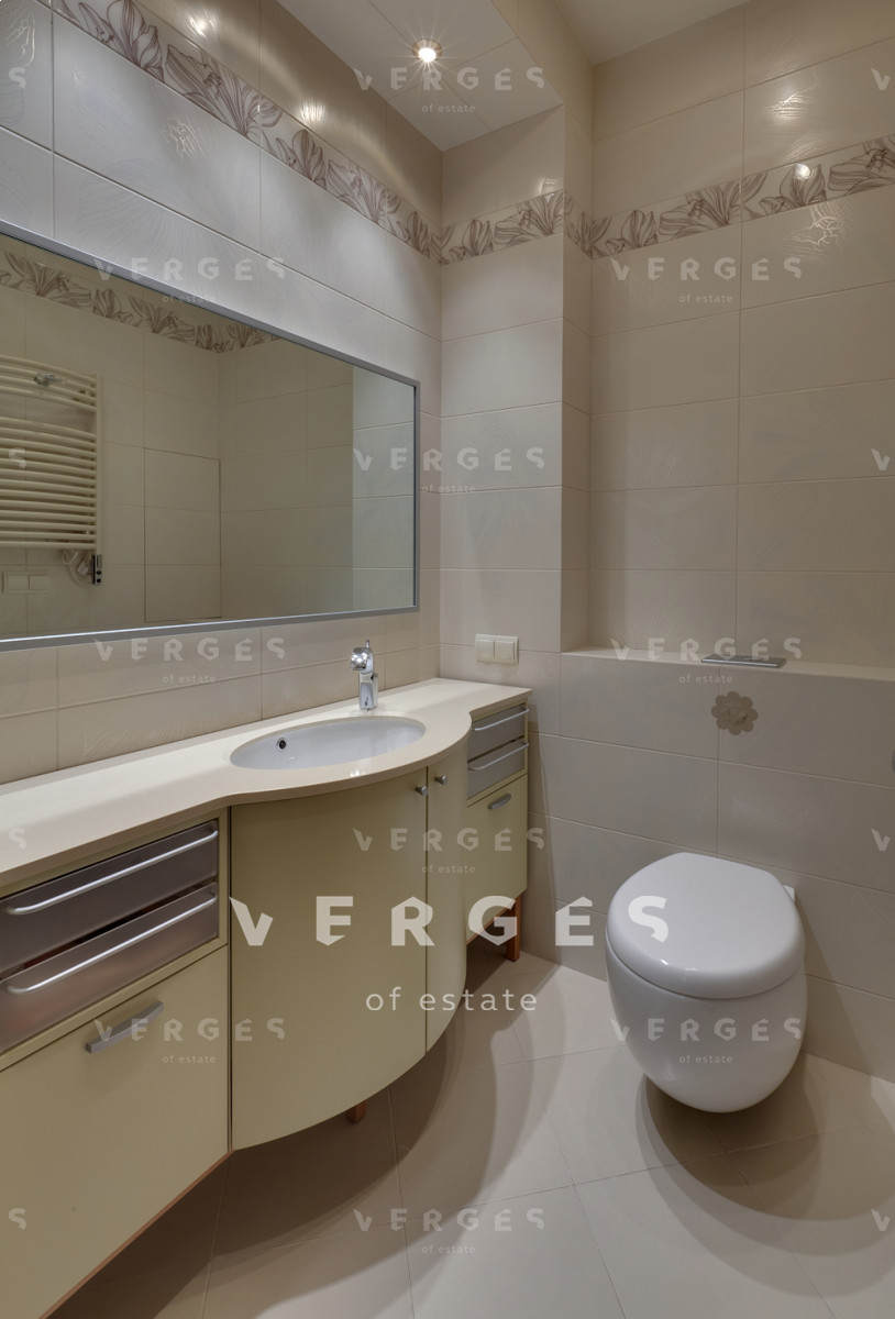 В продажу предлагается квартира в классическом стиле. Планировка: кухня-гостиная, оборудованная встроенной техникой mielle и всей необходимой мебелью, две изолированные комнаты, которые можно использовать в качестве спальни и кабинета, два санузла, гостевой - при входе и основной санузел, оборудованный душевой кабиной и ванной. В комнатах и прихожей - просторные гардеробные. Панорамные окна с видом на прилегающую территорию и прогулочную зону.