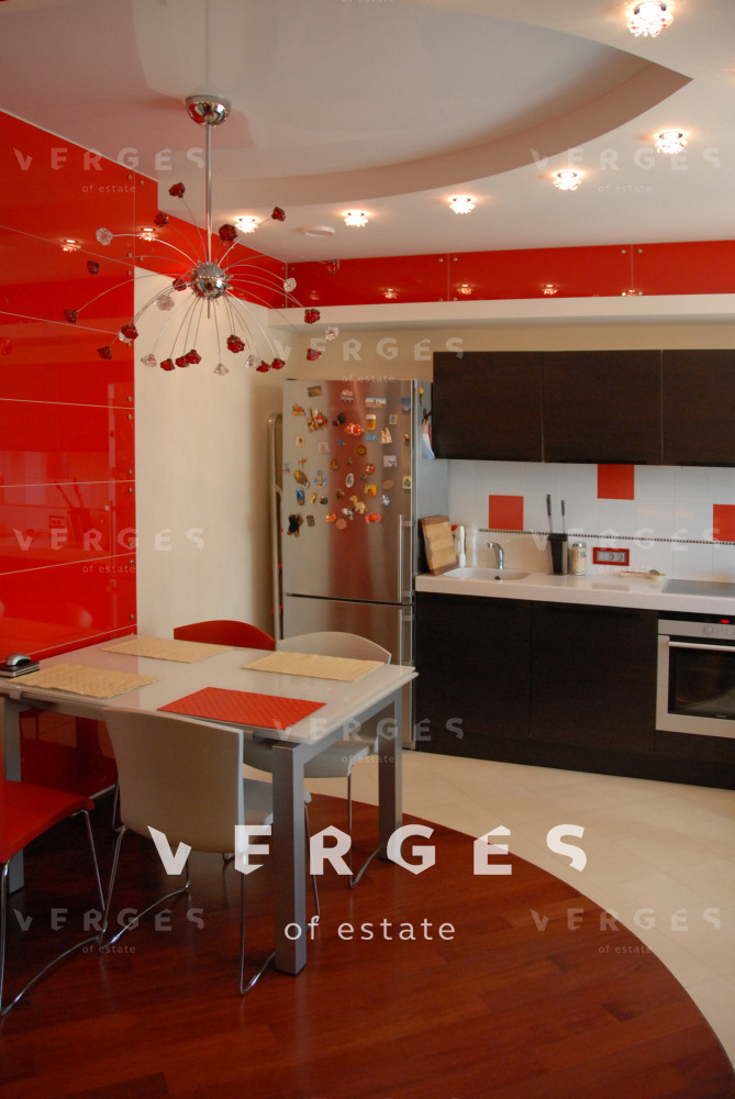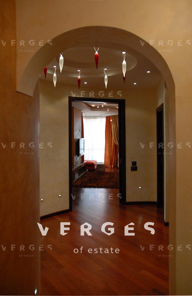 В квартире выполнен высококачественный ремонт с использованием дорогостоящих материалов. Кухонная мебель Bontempi, стол и стулья - Calligaris, спальня Smania, шторы натуральный шелк, мрамор и керамическая мозаика в отделке, массивная паркетная доска Мербау, Итальянская мебель в ванной. Освещение Italamp, AxoLight, AVMazzega. Одна спальня, вместительная гардеробная, кухня- гостиная с возможностью их разделения перегородкой, совмещенный просторный с/у, гардеробный шкаф в прихожей.