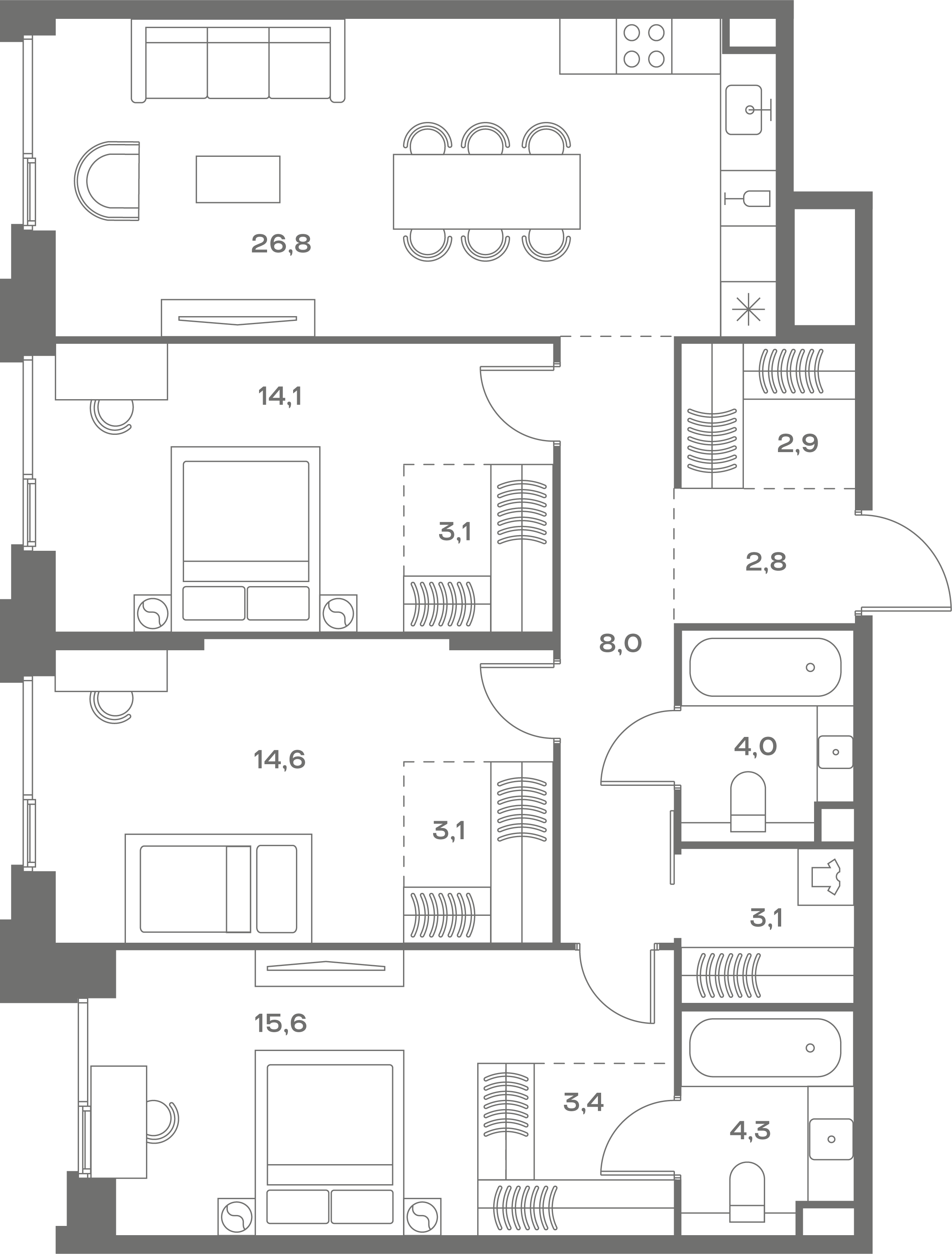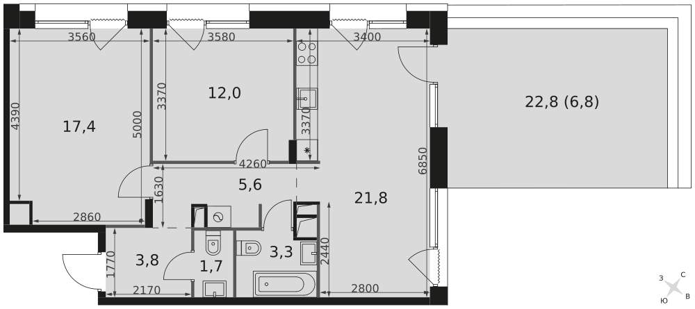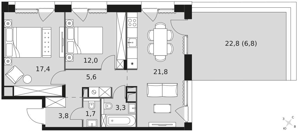 Купить 2к квартиру 90 м² в ЖК Миракс Парк