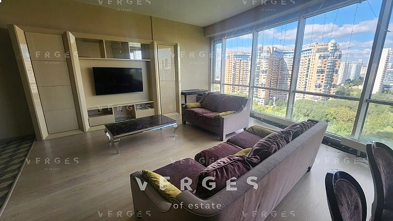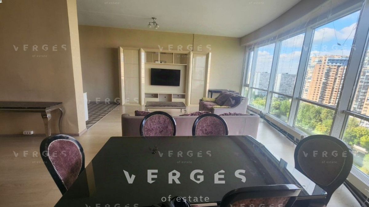 В продажу предлагается квартира общей площадью 159,5 кв.м имеет отличные видовые характеристики, панорамное остекление, оригинальную конфигурацию комнат, включает в себя: гостиную зону, две спальные комнаты и детскую. Панорамные виды на пруд и территорию комплекса.
