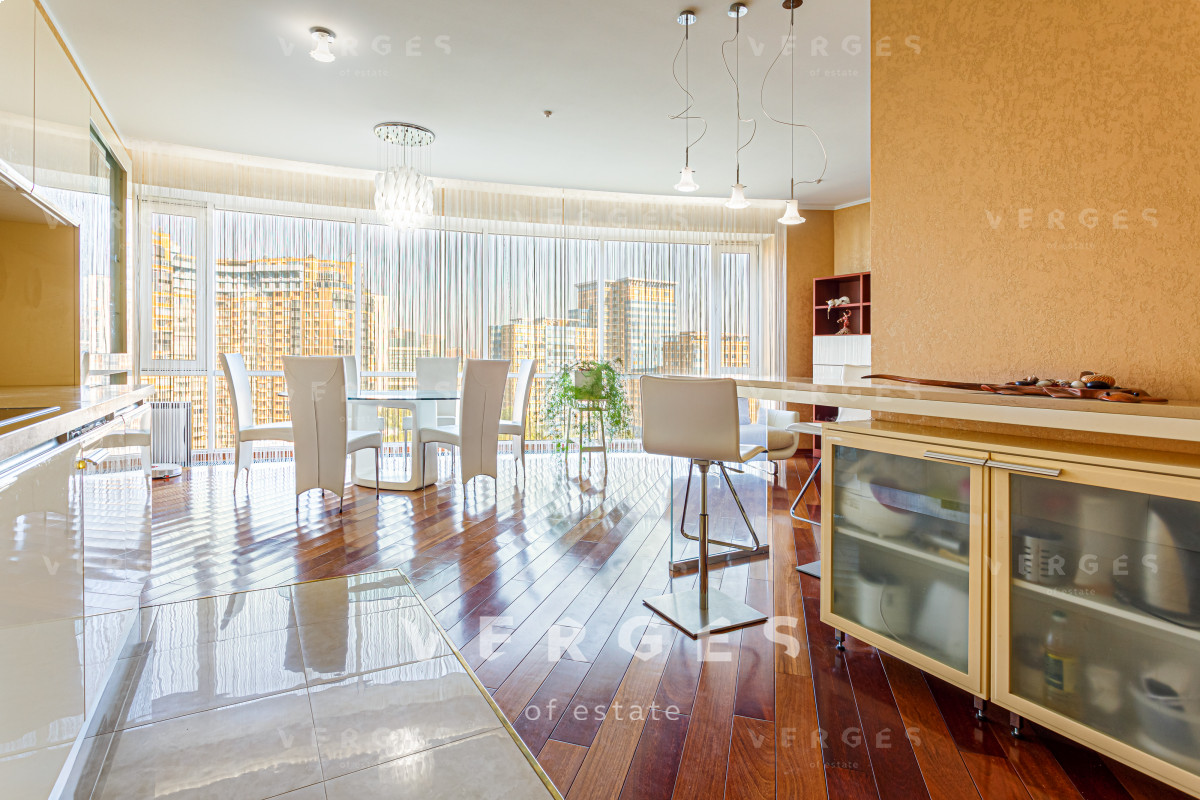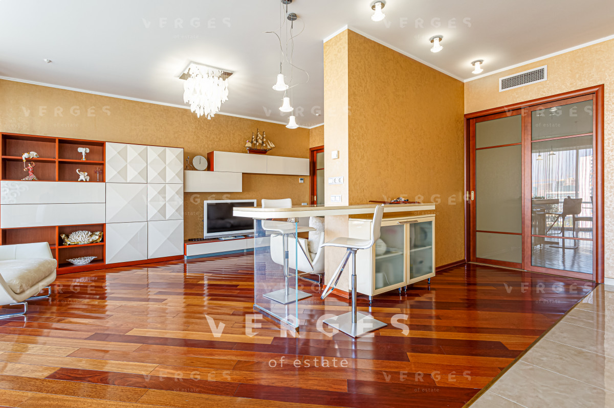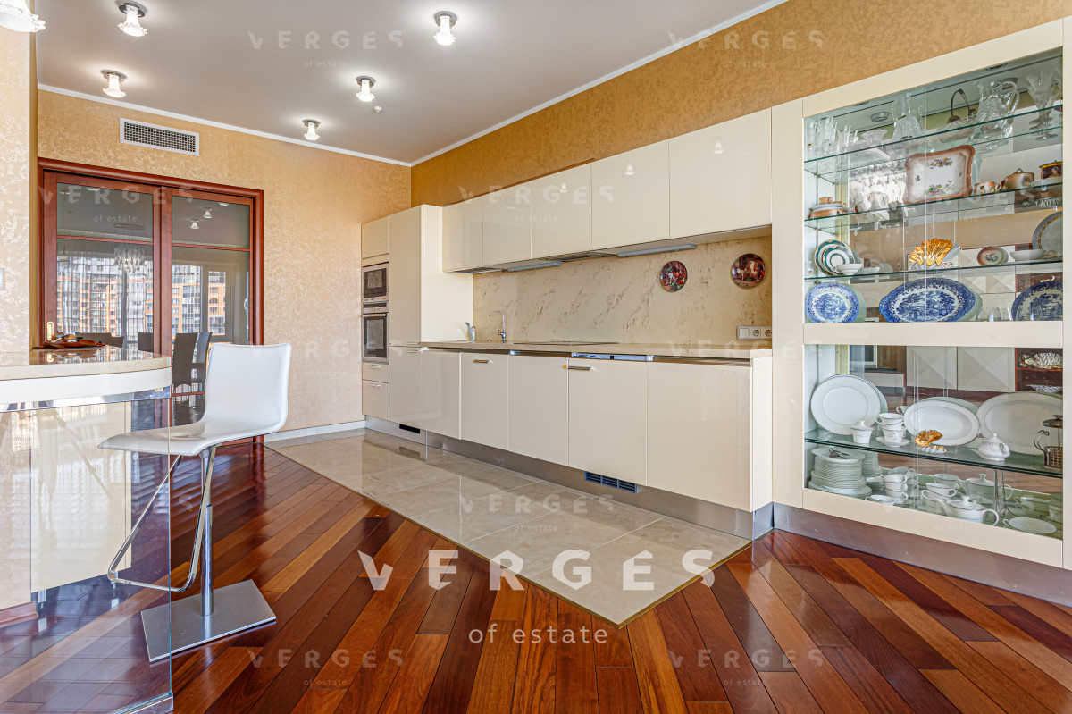 Планировка квартиры продумана до мелочей: три спальные комнаты, кухня-гостиная с панорамным остеклением, 2 совмещенных санузла, постирочная и гардеробная. Из окон гостиной открывается потрясающий вид на озеро природного происхождения. В квартире дорогая, дизайнерская отделка: паркетная доска, шелковые обои, техника от ведущих мировых брендов. Квартира продается без мебели.