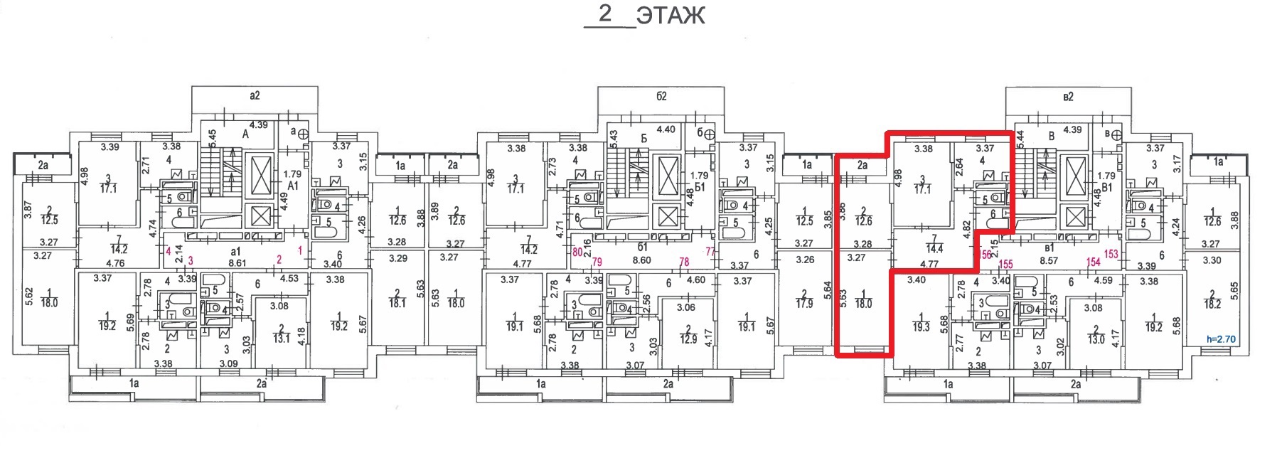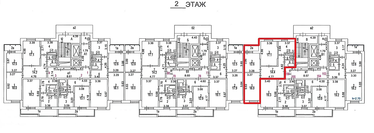 Высота потолков: 2,70 - 2,70 м