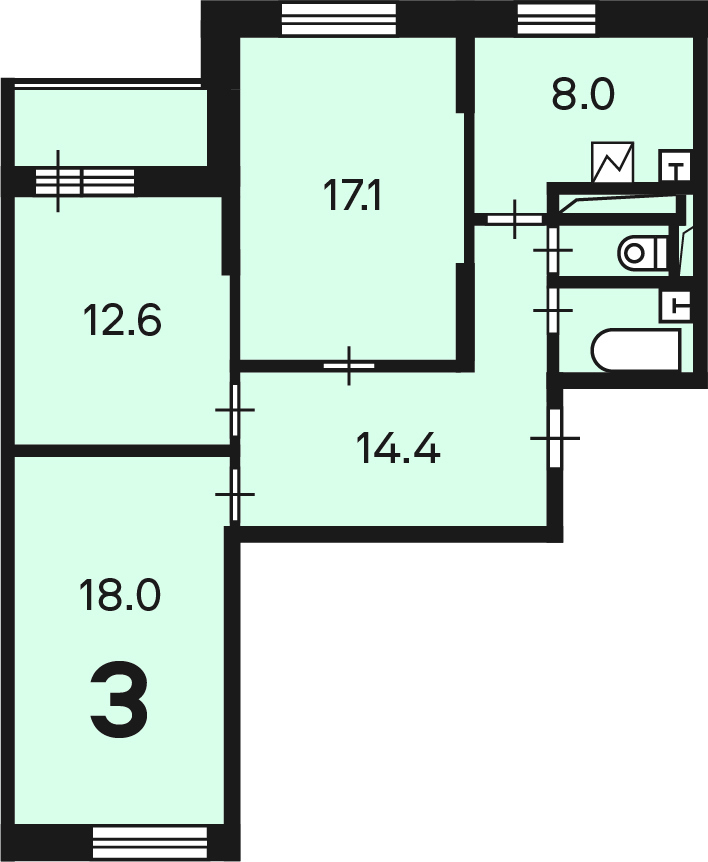 Квартира, 3-комн., 74,5 м², ВАО (р-н Северное Измайлово, (м.Щёлковская) | ВАО, р-н Северное Измайлово, Щёлковское ш., д. 90, корп. 1, этаж 2, кв. 156 | Метро: Щёлковская (пешком 18 мин., транспортом 18 мин., расстояние 1.49 км)