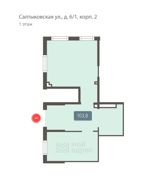Нежилое помещение, 103,8 м² | ВАО, р-н Косино-Ухтомский, Салтыковская ул., д. 6/1, корп. 2, этаж 1, помещение 4Н | Метро: Новокосино (пешком 34 мин., транспортом 26 мин., расстояние 2.27 км)